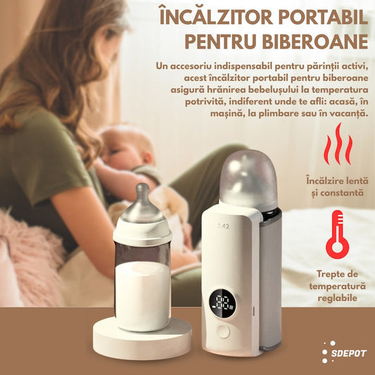 Incalzitor Biberon DEMAHO, portabil, 6 trepte de control, afisaj digital, temperatura constanta, alimentare la retea, 6000 mAh, alb, ideal pentru calatorii sau iesiri in parc
