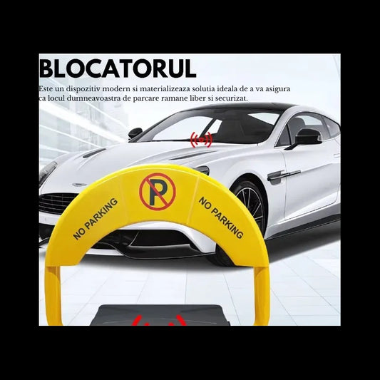 Blocator loc parcare automat, cu 2 telecomenzi si alarma, suporta 2 tone, Galben/Negru, rezistent intemperii