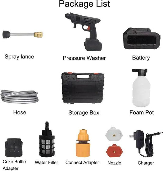 Aparat de spalat cu presiune fara fir ( portabil ), cu 2 acumulatori, 500W, 48V, 8L/min, 30 bar, negru, accesorii si valiza inclusa,